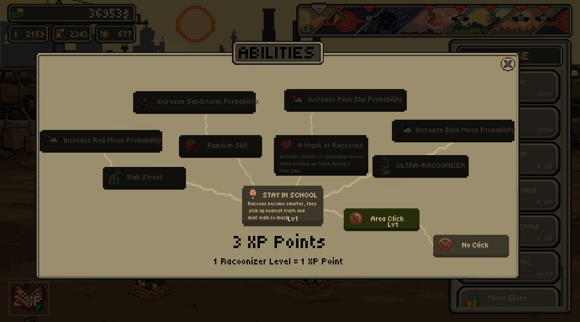 Collect trash, craft upgrades, unlock wild abilities, and slowly turn the entire human population into adorable masked bandits – without getting caught!